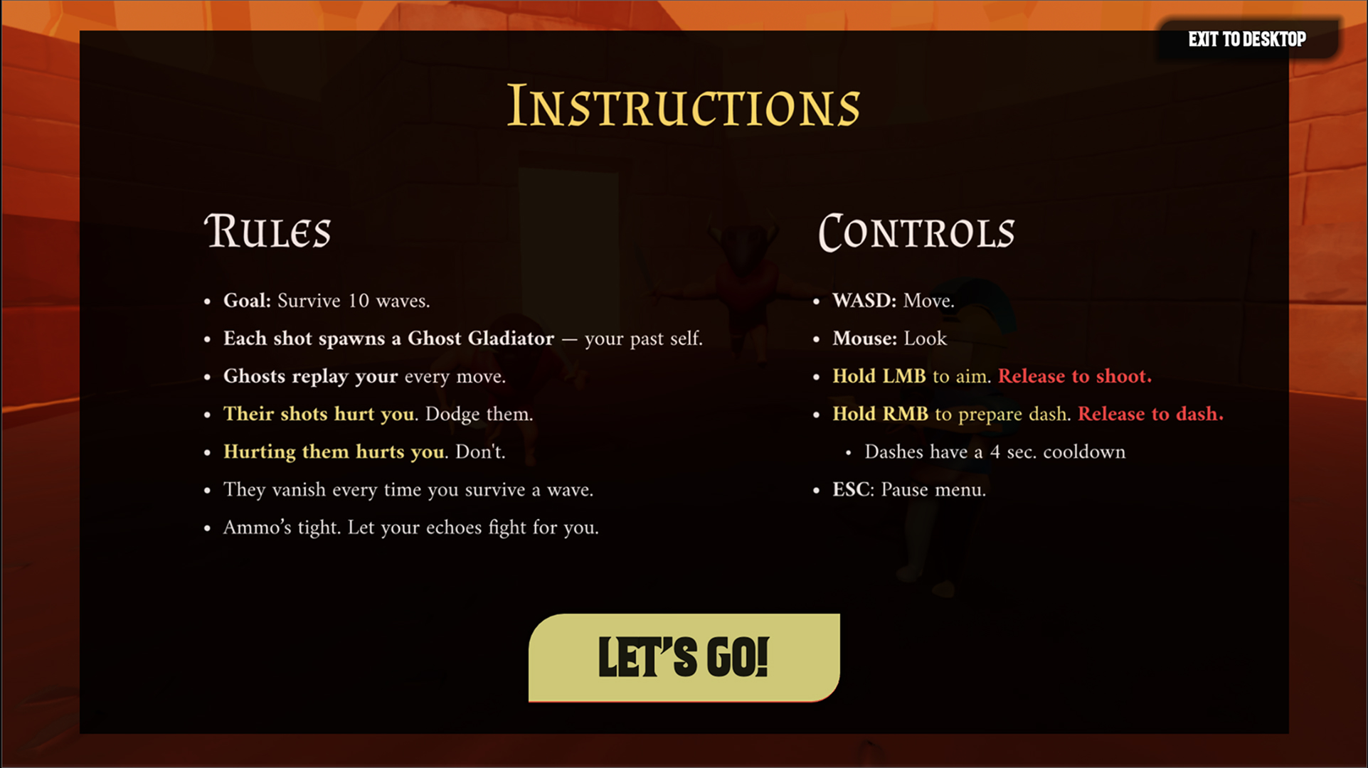Win by outlasting all enemy waves and your ghost echoes. - Ghosts vanish when you survive a wave